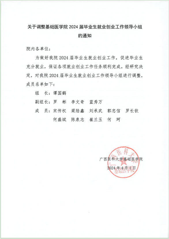 关于调整beat365手机版官网入口2024届毕业生就业创业工作领导小组的通知