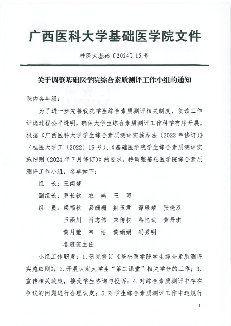 关于调整beat365手机版官网入口综合素质测评工作小组的通知