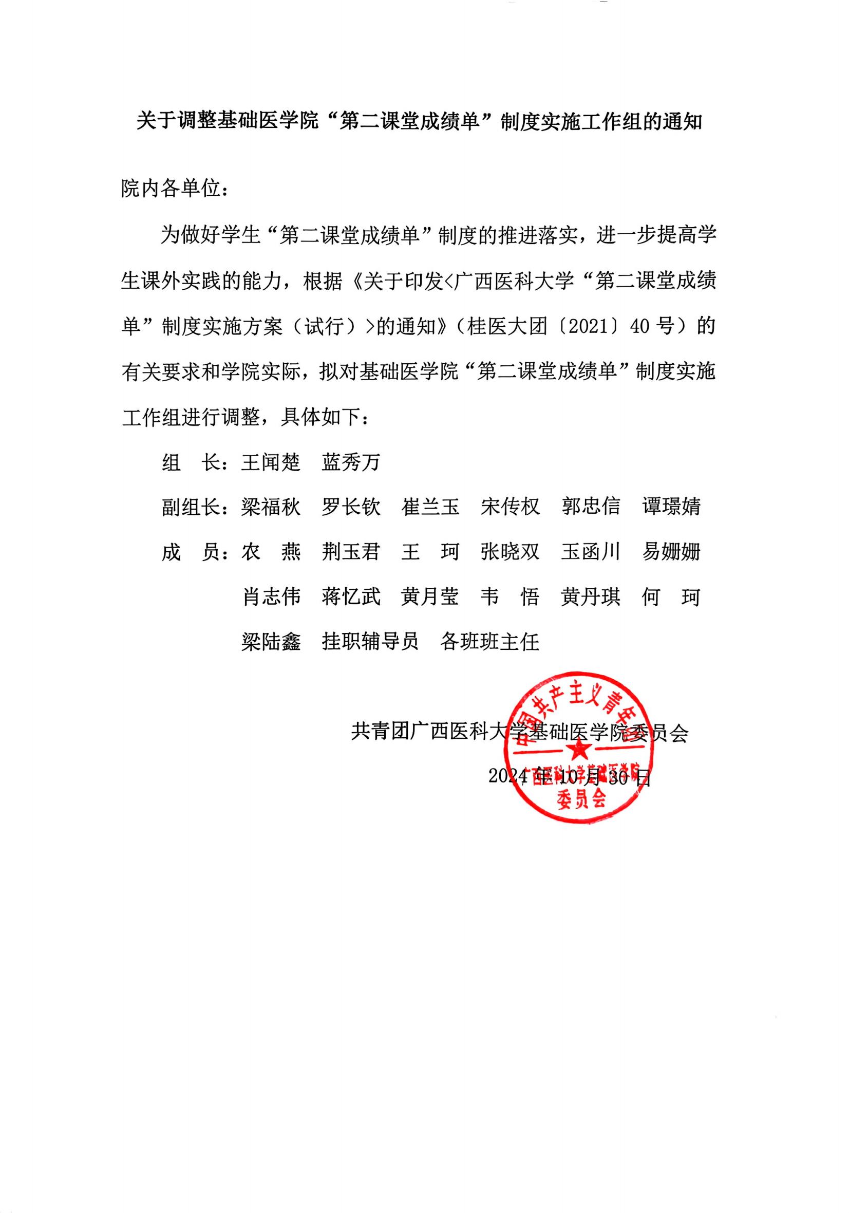 关于调整beat365手机版官网入口“第二课堂成绩单”制度实施工作组的通知