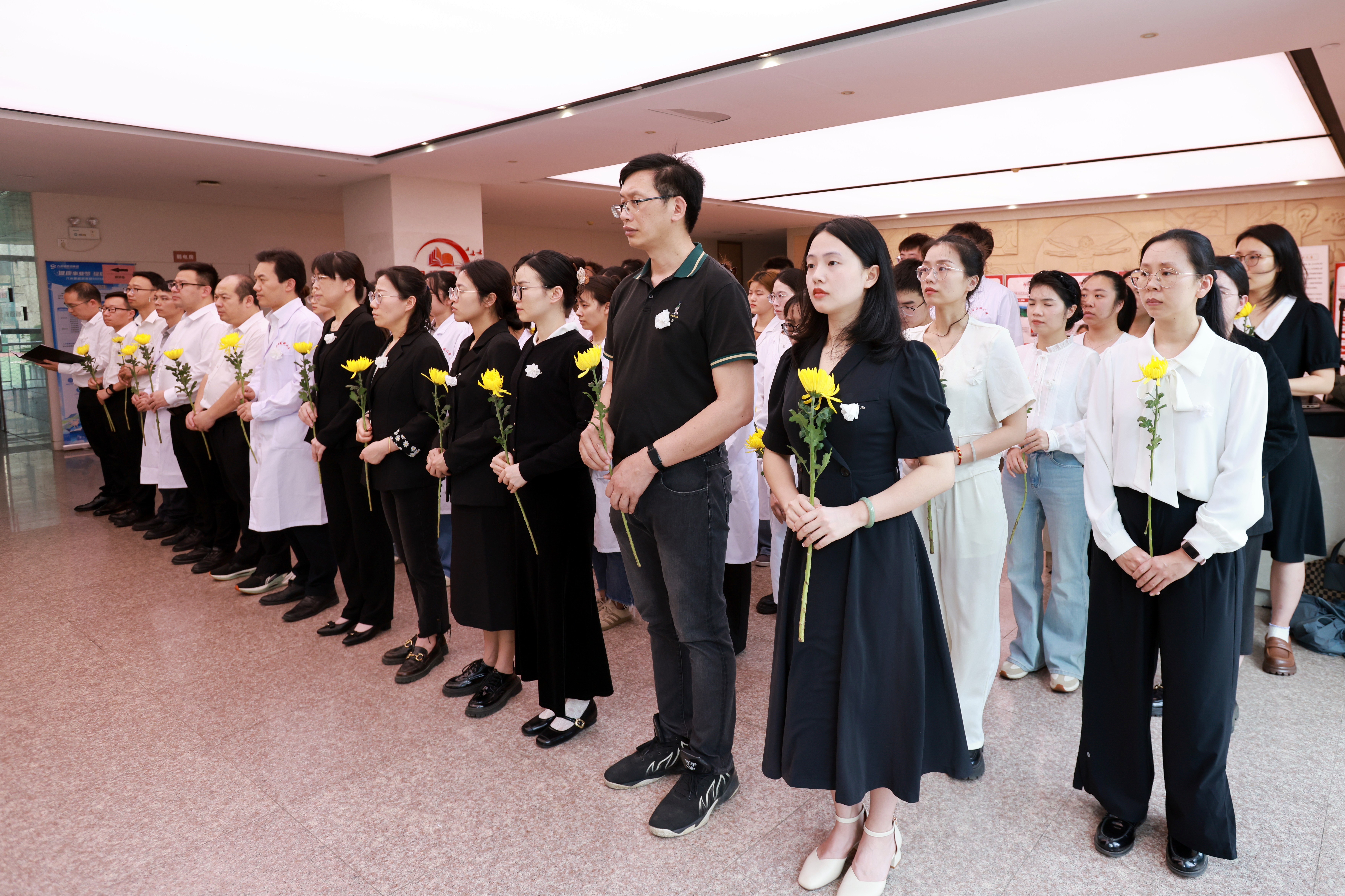 活动在庄严肃穆的氛围中拉开帷幕。全体师生身着白大褂,手持素菊,怀着崇敬与感恩之心,向“无言”良师们默哀,用无言的静默表达对他们的深切缅怀和崇高敬意。