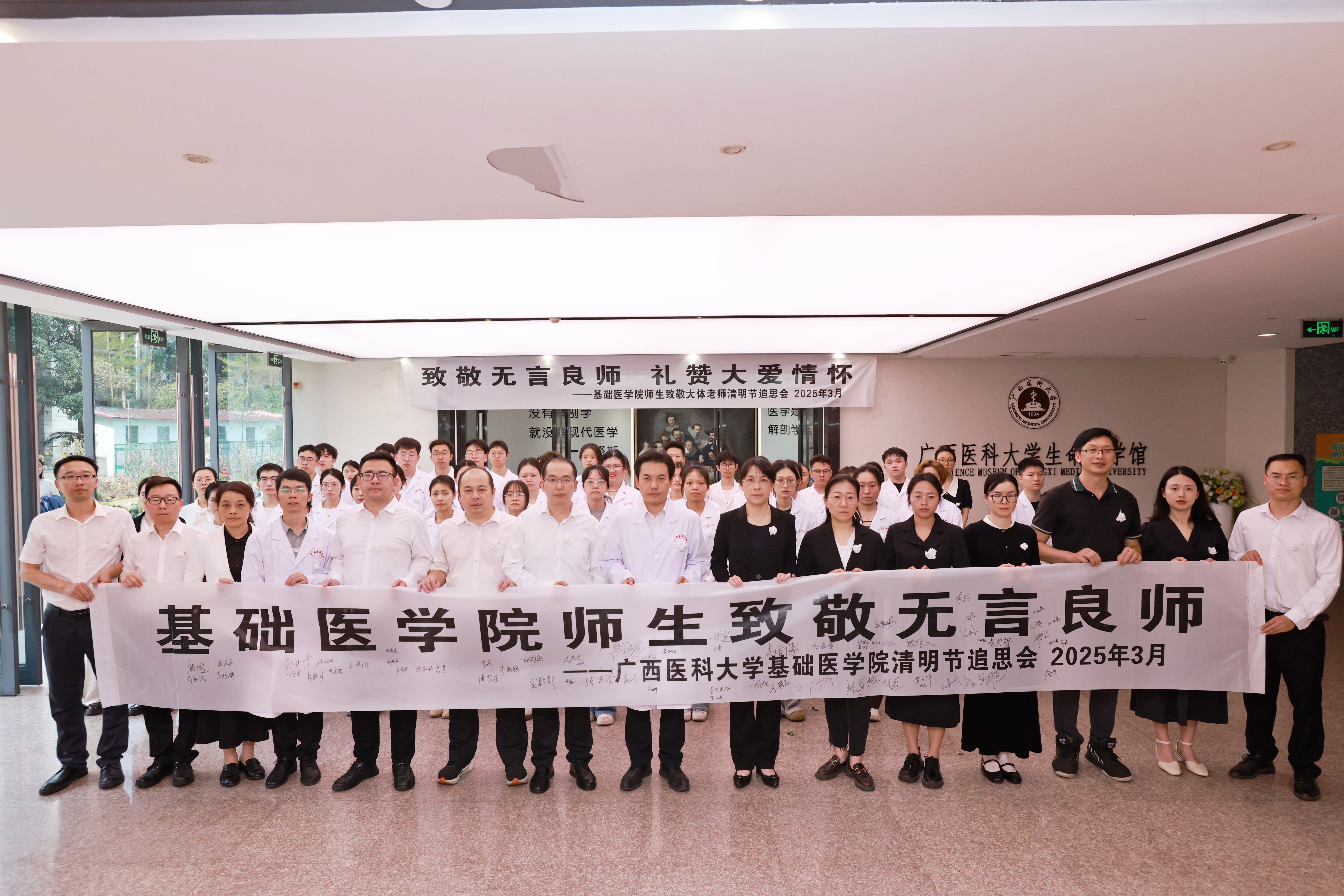 清明寄哀思,誓言传初心。3月27日下午,我校beat365手机版官网入口“致敬大体老师——清明追思会”在南宁—校本部生命科学馆举行,感恩逝者义举,追思故者善行。基础医学院领导班子、“人体解剖与组织胚胎学”教育部首批全国高校黄大年式教师团队代表、广西医科大学遗体捐献办公室代表、辅导员及学生代表等50余人参加活动。