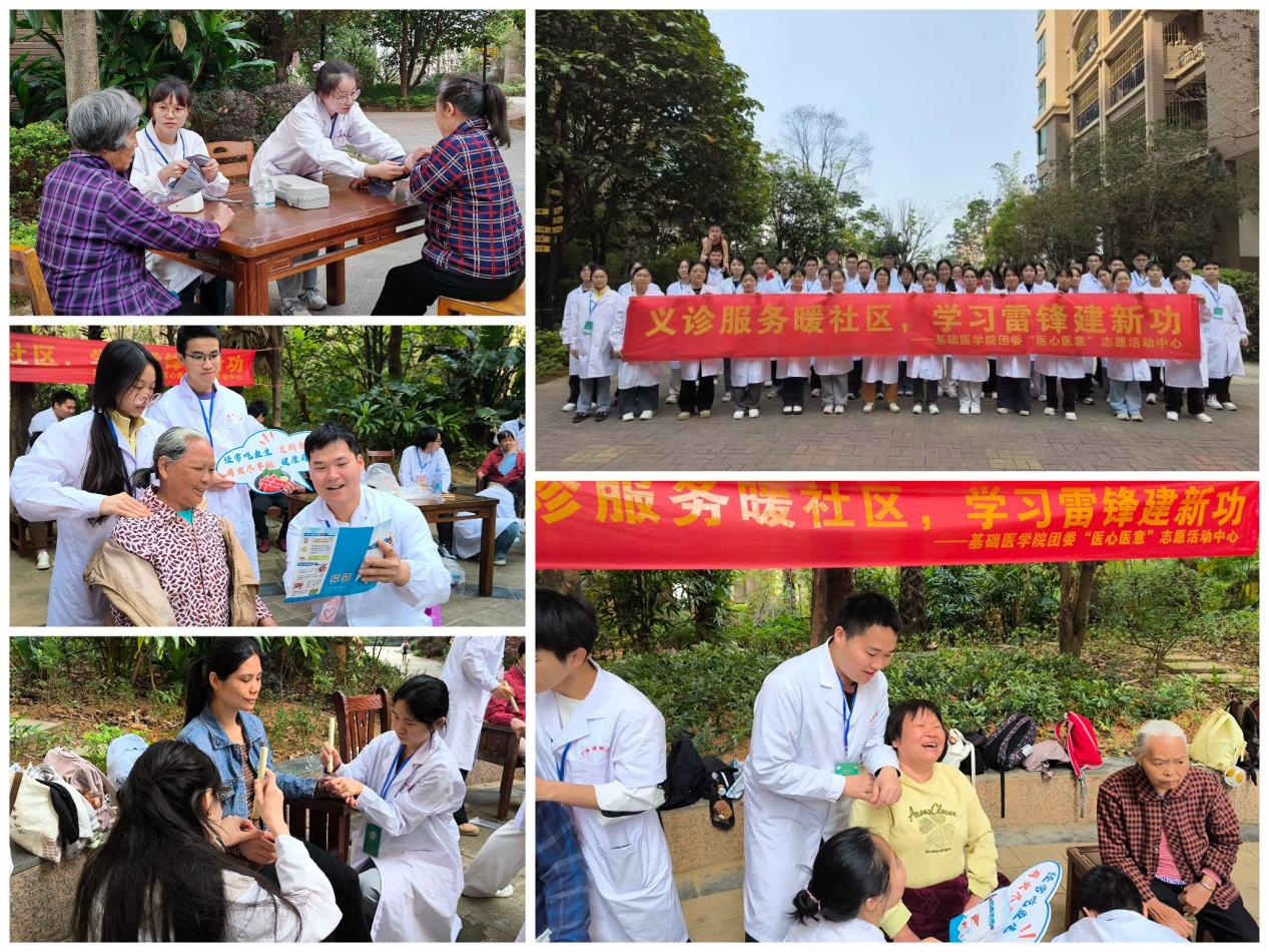 在社区服务方面,学院团委组织了“义诊服务暖社区,学习雷锋建新功”志愿服务,武鸣广泰丽园小区的居民们在家门口就享受到了量血压、艾灸、按摩以及健康知识宣讲等贴心服务,这不仅增强了居民的疾病预防意识,也进一步提升了他们的健康理念。