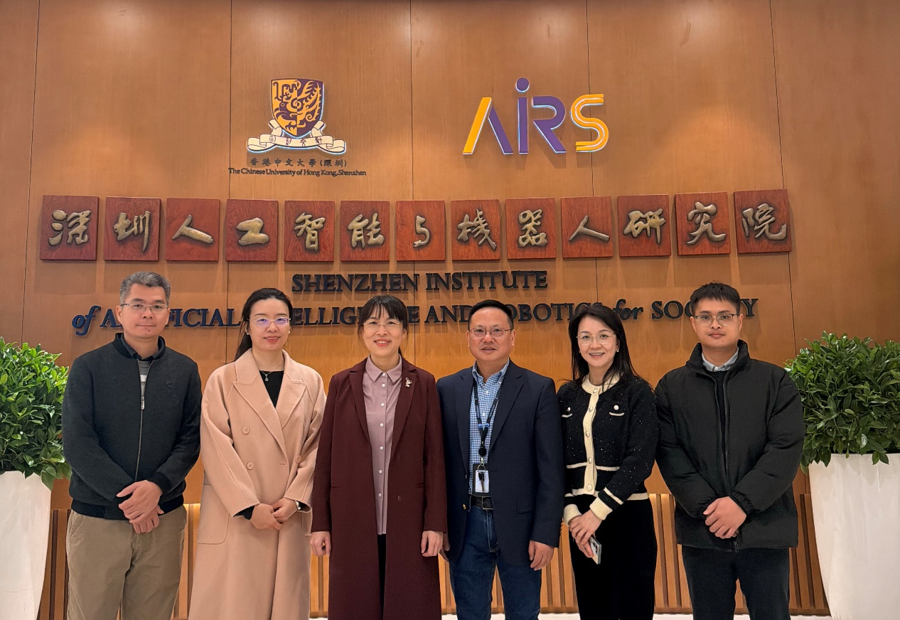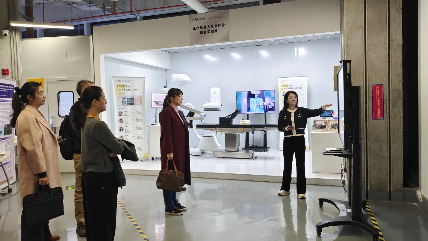 学院一行首先走访深圳市人工智能与机器人研究院,该研究院成立于2019年,是深圳市政府依托香港中文大学(深圳)建立的市级十大基础研究机构之一。在医药机器人实验室,学院老师与研究院研发人员深入交流了微纳米机器人在医疗领域的应用及新型材料开发,探讨智能技术在医疗康复、智能制造等方面的应用转化。