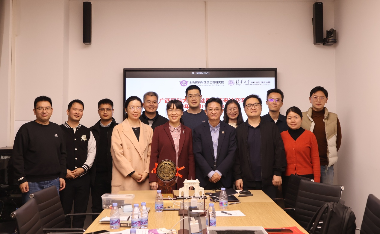 随后,学院走访清华大学深圳生物医药与健康工程研究院,参观了相关实验室与科研设施。研究院主持工作副院长邢新会,党支部书记、副院长张灿阳,副院长马少华及教师代表参加座谈交流。罗彬院长首先代表学院向支持学院发展的清华大学深圳生物医药与健康工程研究院表示衷心的感谢,介绍了学校91年的发展历程、学院沿革和教学科研概况。邢新会教授详细介绍了研究院的历史沿革、学科方向、科学研究、人才培养等基本情况。与会教师分享了各自的研究特色与优势,并在学生联合培养、跨学科课题联合申报、学术交流机制共建等方面进行了深入交流。